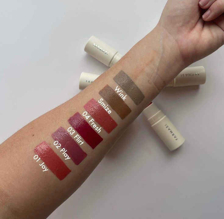 حتما عکس تست رژگونه ها روی دست و ببینید رنگ و شماره کنار هر رنگ نوشته شده است.